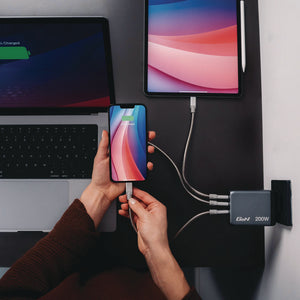 - Supports charging of up to four devices simultaneously with a maximum total output of 200 W.