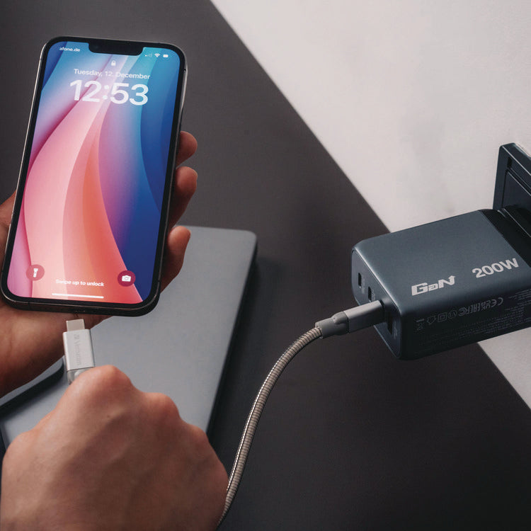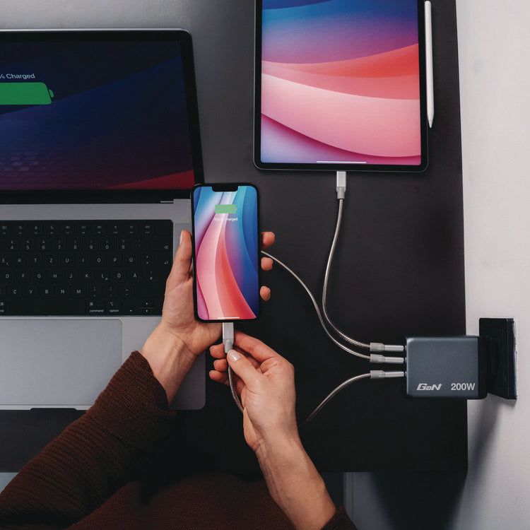 200 W 4-Port GaN Wall Charger, Black/Gray