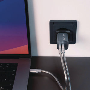 Gallium Nitride (GaN) technology delivers high-powered, fast, efficient charging, generates less heat and allows for smaller and lighter chargers, making them ultraportable. The GNC-35 charger is made with high-quality, flame-resistant materials and features four safety protection systems to ensure your safety while charging. With its foldable US prongs and replaceable EU and UK plugs, it's the ultimate travel companion.