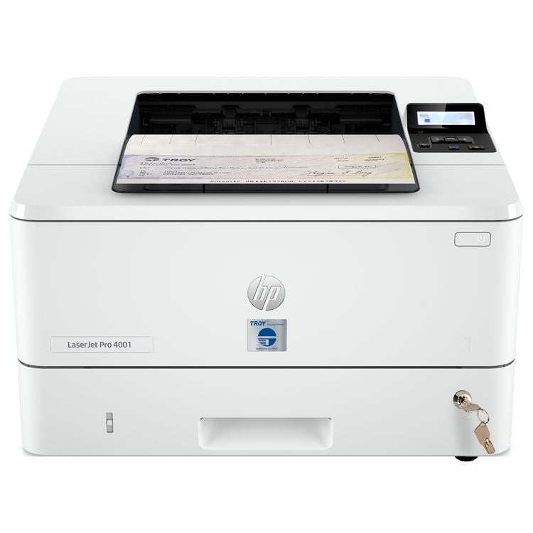 Print secure checks in-house. Designed for low volume check printing to help streamline your workflow. Fast printing enables efficiencies in small- to medium-sized office environments. Enjoy HP award-winning reliability combined with optimized check printing security from TROY®. Works with blank check stock by adding the MICR line at the point of print, or use with preprinted check stock to protect the payee and amount. MICR fonts are created specifically for optimal reading and minimal errors. Includes a full size, standard-yield MICR Toner Secure, the World's Most Fraud Resistant MICR Toner, to protect your checks from chemical alteration. Complete with locking tray to help deter paper theft.