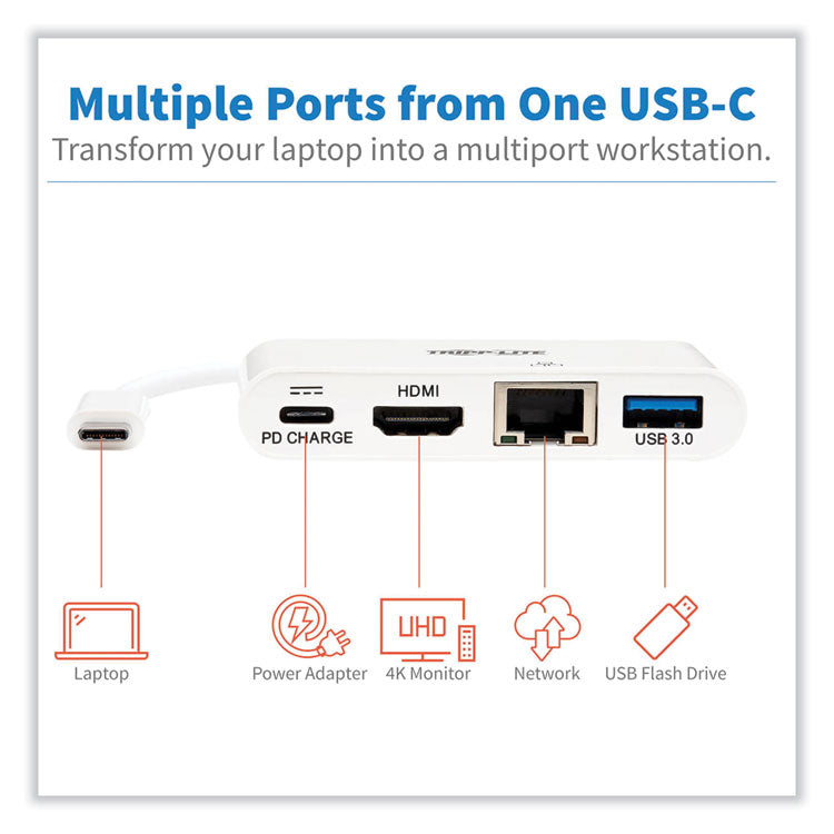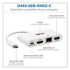 4k Dock With Charging And Ethernet, Usb C/4k Hdmi/usb A/pd Charging, White
