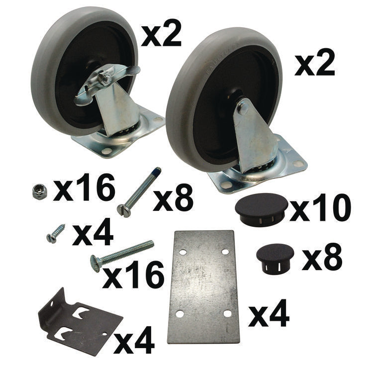5-Inch Swivel and Rigid Plate Caster Kit with Hardware, Gray