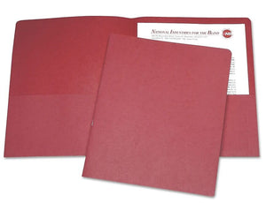 AbilityOne 2-Pocket Leather Portfolio Folder, Red, 25/Box (NSN5122415)