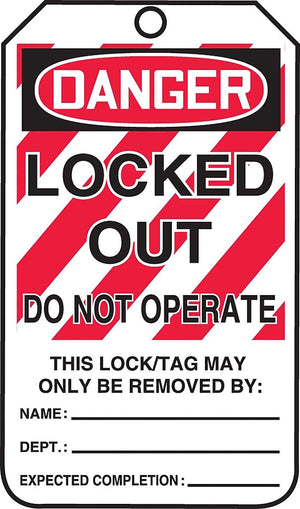- Legend: "DANGER LOCKED OUT DO NOT OPERATE"