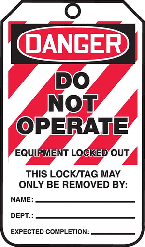 - Legend: "DANGER DO NOT OPERATE EQUIPMENT LOCKED OUT"