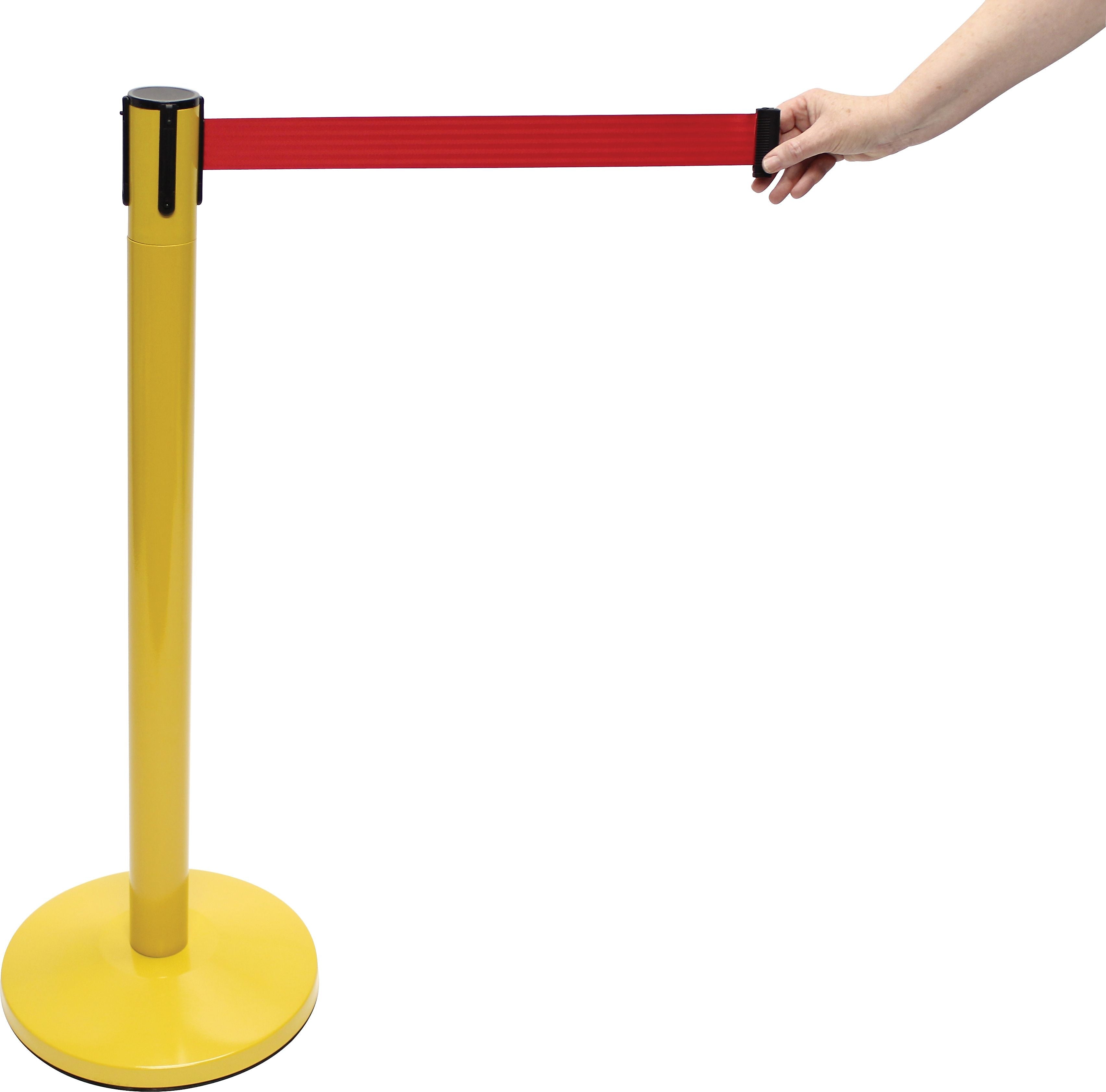 Accuform Signs® Blockade Retractable Belt Tape Barrier, Yellow Post/Red Belt Tape, Each