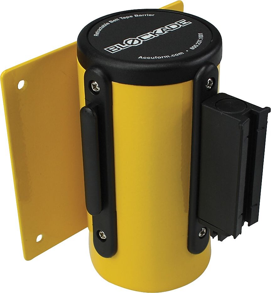 Accuform Signs® Blockade Wall-Mount Retractable Belt Tape Barrier, Yellow Case/Black Belt Tape, Each