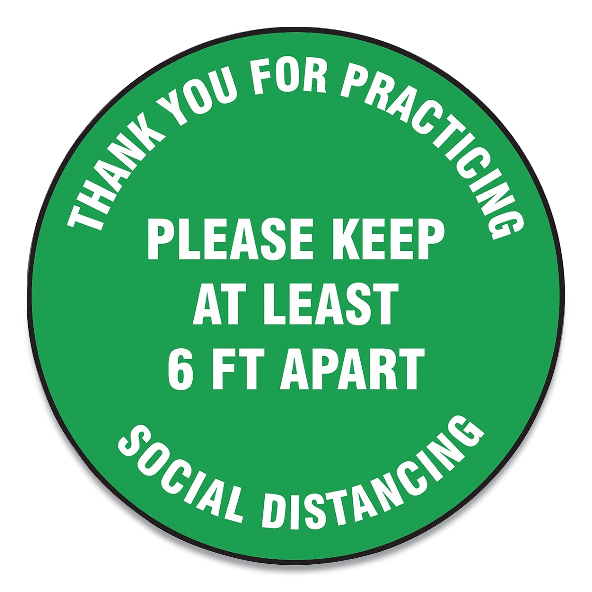 Accuform Slip-Gard Floor Signs, 17" Circle, "Thank You For Practicing Social Distancing...", Green, 25/PK (GN1MFS425ESP)