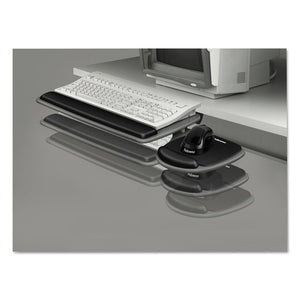 Enjoy custom comfort and easy space management with the fully adjustable Fellowes® Keyboard Tray! Simply grasp and rotate keyboard tray to your preferred work position. Use a single knob to adjust the height and tilt up to +0°/-10° for individual comfort. Both keyboard tray and mouse tray include soothing gel wrist supports. Mouse tray mounts to either right or left side or stows underneath for easy storage when not in use.