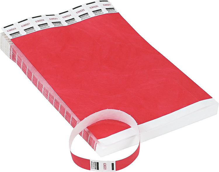 Advantus Sequentially Numbered Crowd Control Wristbands, Red, 500/Pack (AVT75510)