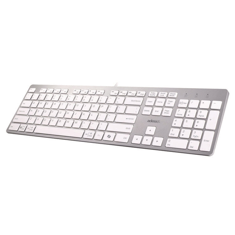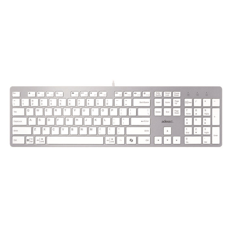 The Adesso Full Sized Keyboard (AKB-730) is a sleek and modern keyboard that has scissor switches and a multi OS layout that also includes a CoPilot AI hotkey, USB-C, USB-A, and 3.5 mm Aux ports, built to make handling your daily computer tasks easier. The scissor key switches provide a more quiet, tactile and snappy response when typing. The CoPilot AI hotkey on your keyboard provides instant access to an advanced AI assistant designed to assist you in various tasks. Simply press the designated hotkey, and Copilot AI will be ready to generate code, provide creative suggestions, or assist you with language-related tasks. It's your quick and efficient way to harness the power of AI right at your fingertips. This wired USB-C keyboard offers the freedom to use your keyboard with Windows, Mac and Android systems and easily switch between them. Universal compatibility to connect all the devices without the need for additional drivers or software. The Adesso AKB-730 delivers a smooth and responsive typing experience with its scissor switch technology that requires less key travel distance and less force to press keys making it more comfortable for prolonged typing sessions. This sleek and modern keyboard is designed with a USB-C connection, making it compatible with a wide range of devices, including laptops/notebooks, tablets, and smartphones. Equipped with a USB-C, USB-A, 3.5 mm Aux ports that offers versatile connectivity. This feature enhances the keyboards functionality by enabling convenient audio and peripherals connectivity.
