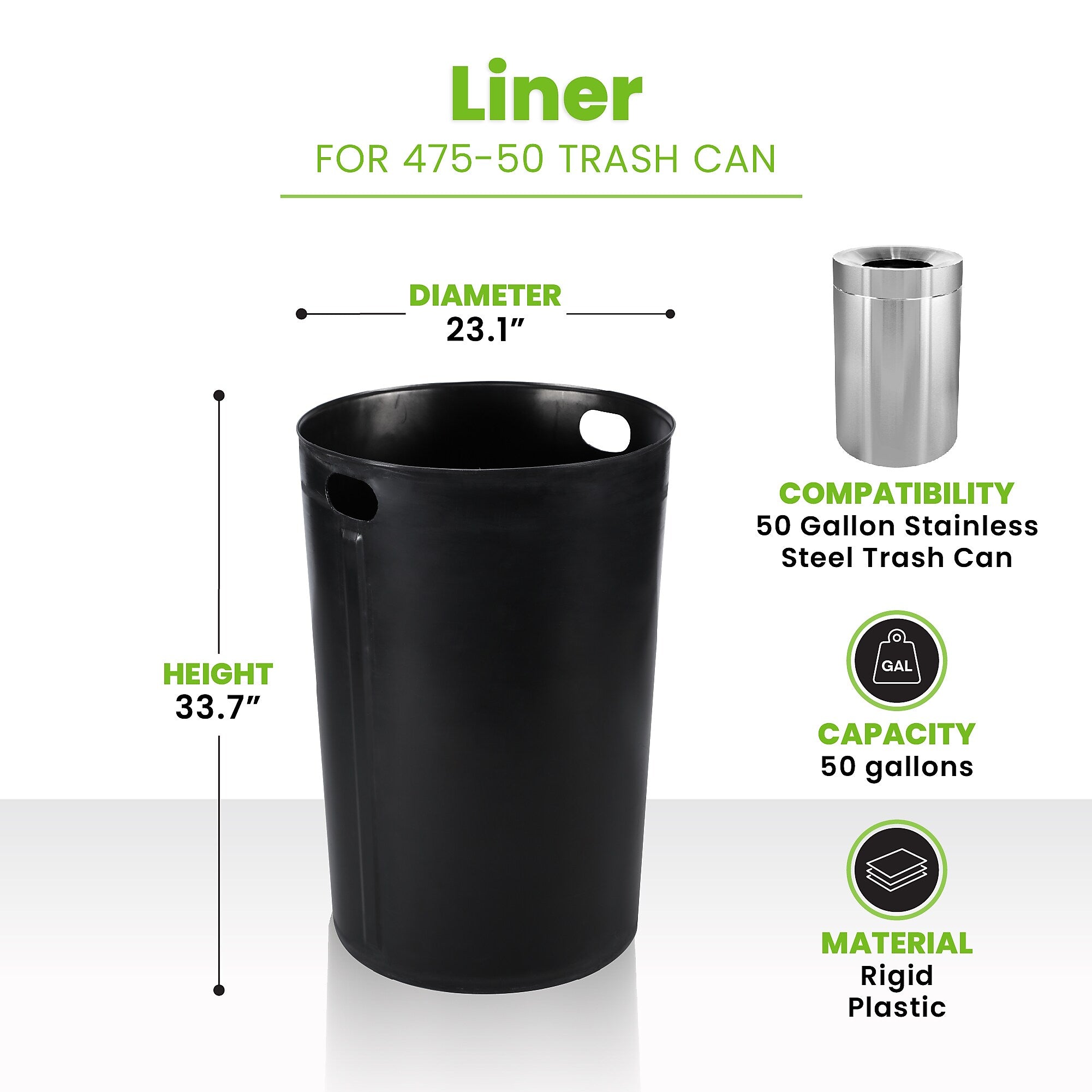 Elevate your waste management game with the Liner for 50-gallon stainless steel trash can. With an impressive capacity of 50-gallons, this liner is tailored for high-traffic indoor areas. It is constructed from rigid plastic, built to withstand daily wear and tear, ensuring longevity and reliability. We designed this liner to seamlessly fit our 50-gallon stainless steel trash can. What sets it apart from other 50-gallon liners is the wide-open top with handles, simplifying trash disposal and bag changes. It will help keep your stainless steel receptacle clean and free from leaks or trash bag breakages. Upgrade your waste disposal system effortlessly with the liner for 50-gallon stainless steel trash can.