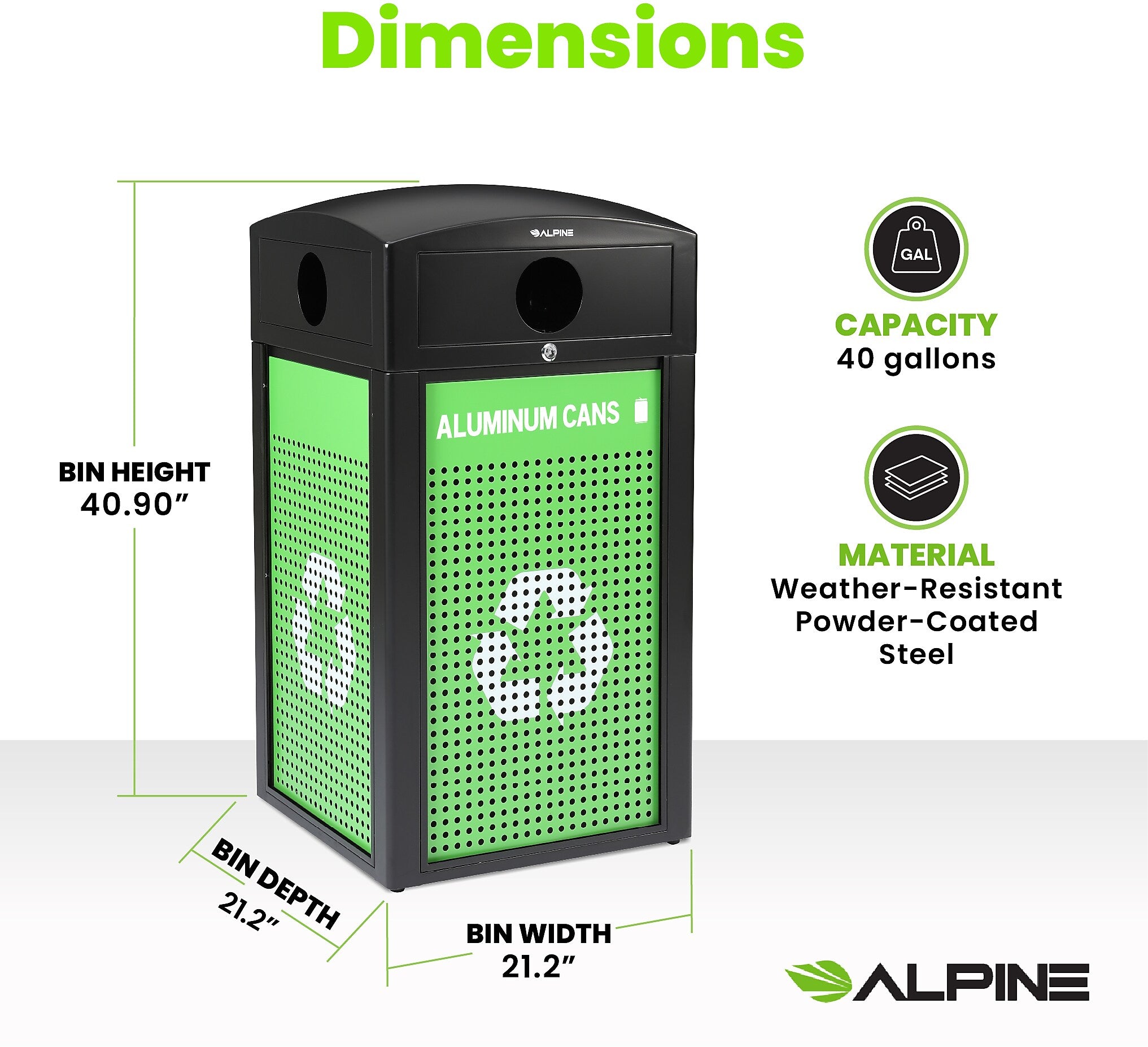 Alpine Industries GS Series Steel Recycling Bin, 120 Gallon, Green (ALP471-40-GSCMS-MK)