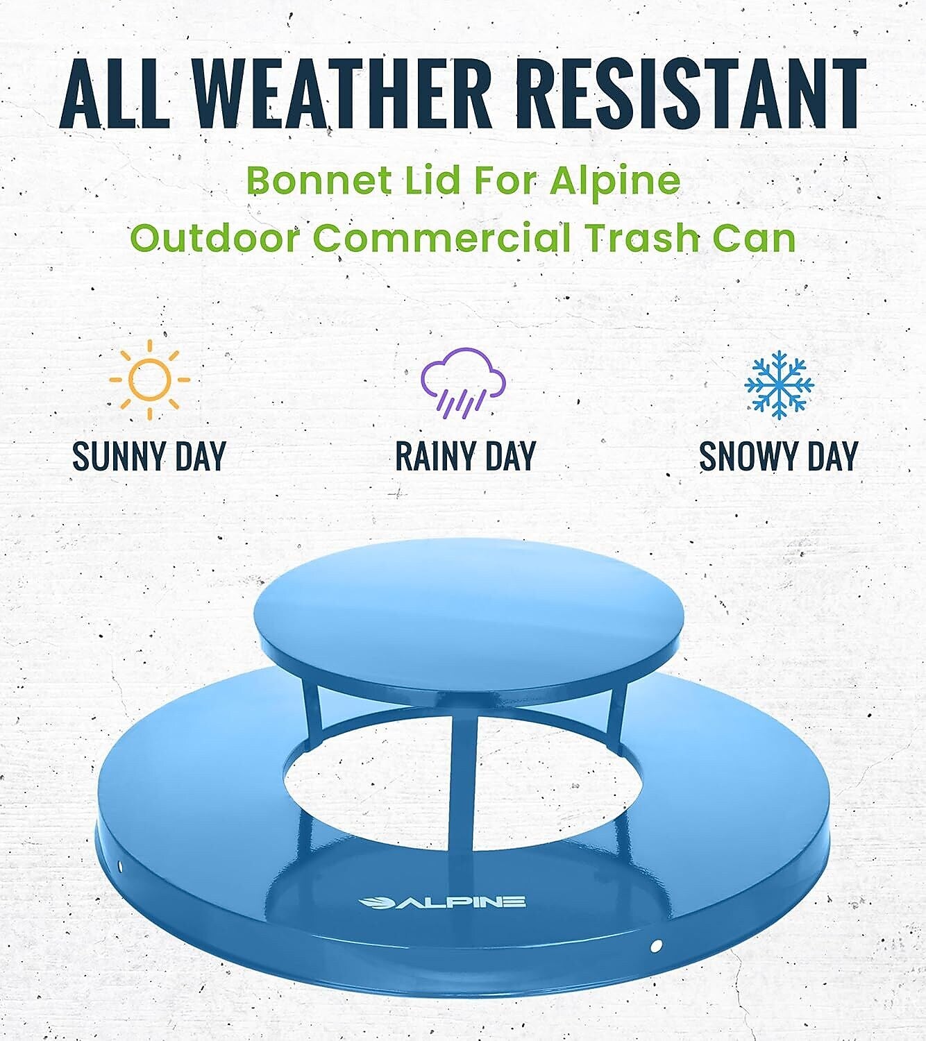 Alpine Industries Metal Commercial Outdoor Rain Bonnet Lid for 38-Gallon Recycling Receptacle, Blue (479-38-A-BLU)