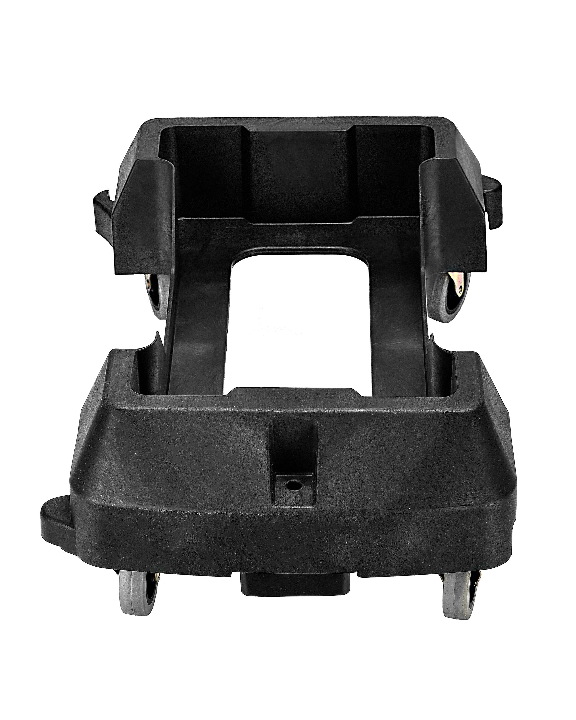 - Heavy-duty rectangular trash can dolly designed for 23-gallon commercial trash bins