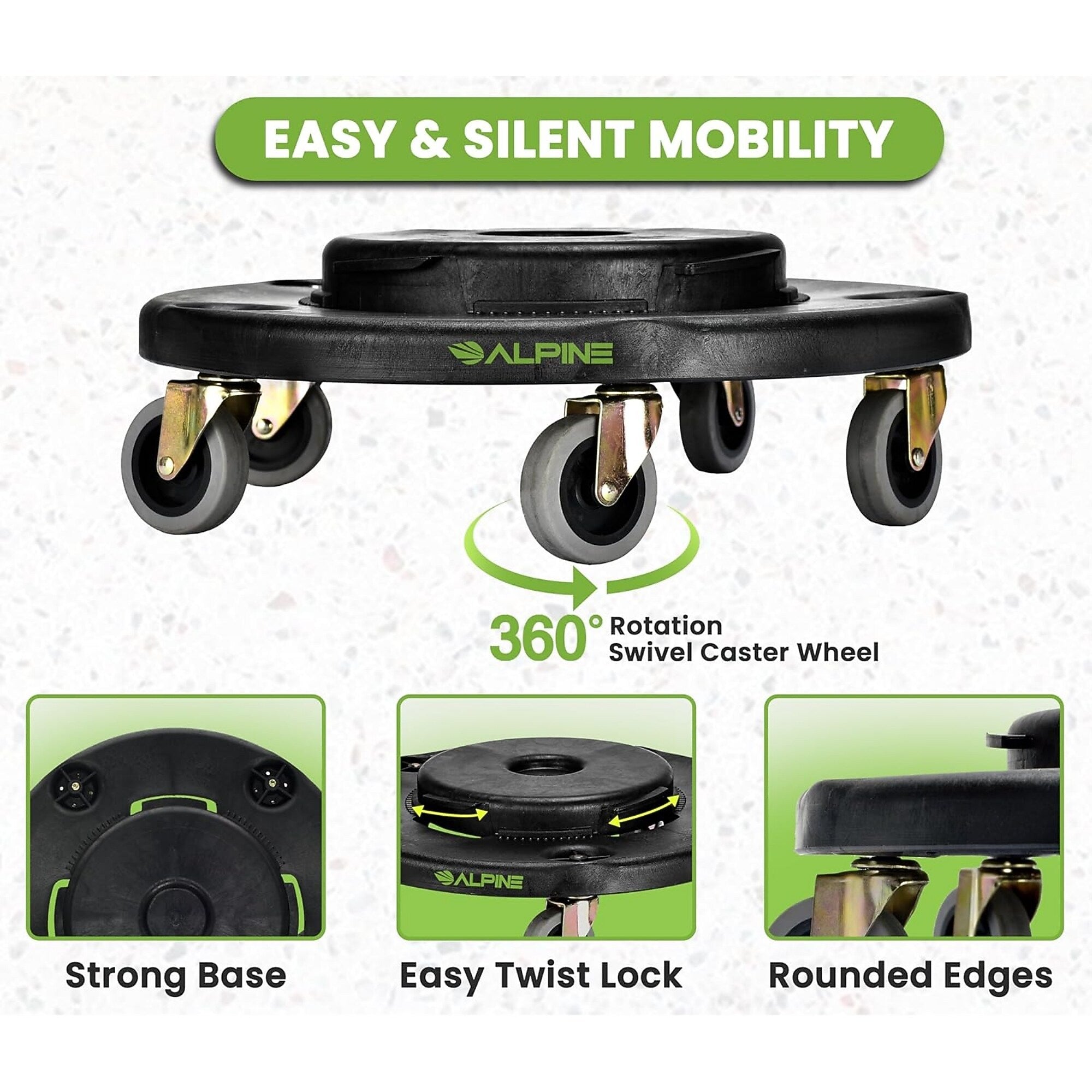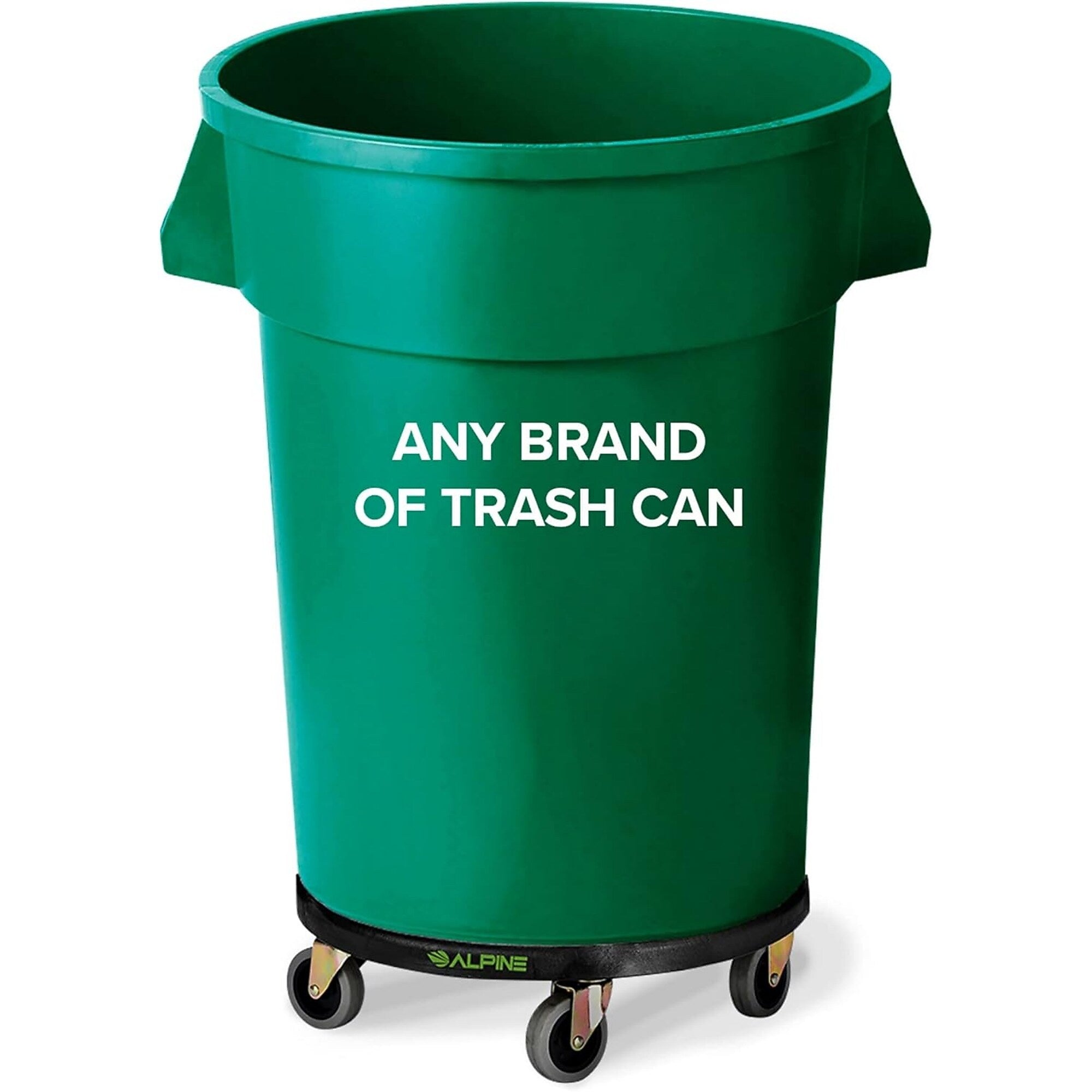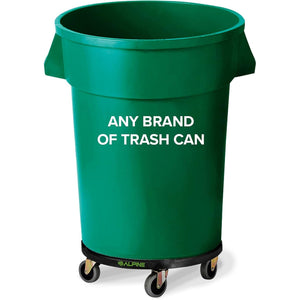 Easily transport waste containers in offices, schools, restaurants, and more with the Alpine Industries large trash can dolly, which is equipped with five swivel caster wheels that maneuver effortlessly over various terrain types and move in any direction. The dolly is designed with smooth rounded edges to prevent scratching and scuffing walls or other surfaces. With a twist-lock design, the dolly securely holds in place any round 20/32/44/55 gal. trash can up to 500 lbs. The Alpine Industries large trash can dolly is a vital investment for any company that wants to reduce worker strain while increasing productivity.