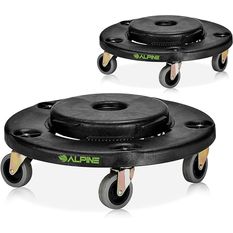 Alpine Industries Round Trash Can Dolly, 500 lb. Weight Capacity Black, 2/Pack (ALP471-32-DOLLY-2PK)