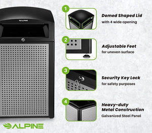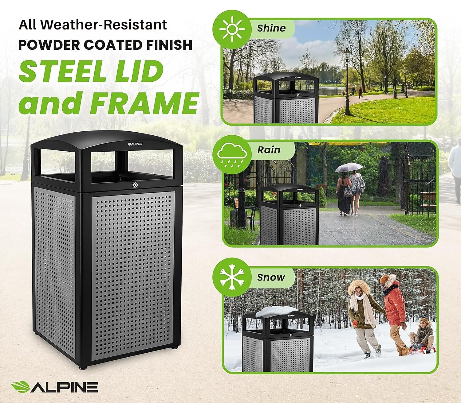 When equipping your business's exterior with a waste receptacle, you want to be reassured it will last in the harshest weather conditions while remaining aesthetically pleasing. The Alpine 40 gal. trash can with covered top and open sides gives you confidence that you're getting the most bang for your buck on a long-lasting product. Its weather-resistant powder-coated steel frame and lid will ensure its longevity while maintaining its quality. Additionally, its solid dome lid allows for rain to glide off easily and not pool, decreasing the likelihood of corrosion. The included heavy-duty plastic interior bin will securely hold trash bags without the worry of leaks. This trash can comes equipped with a lock and key to help protect your investment.