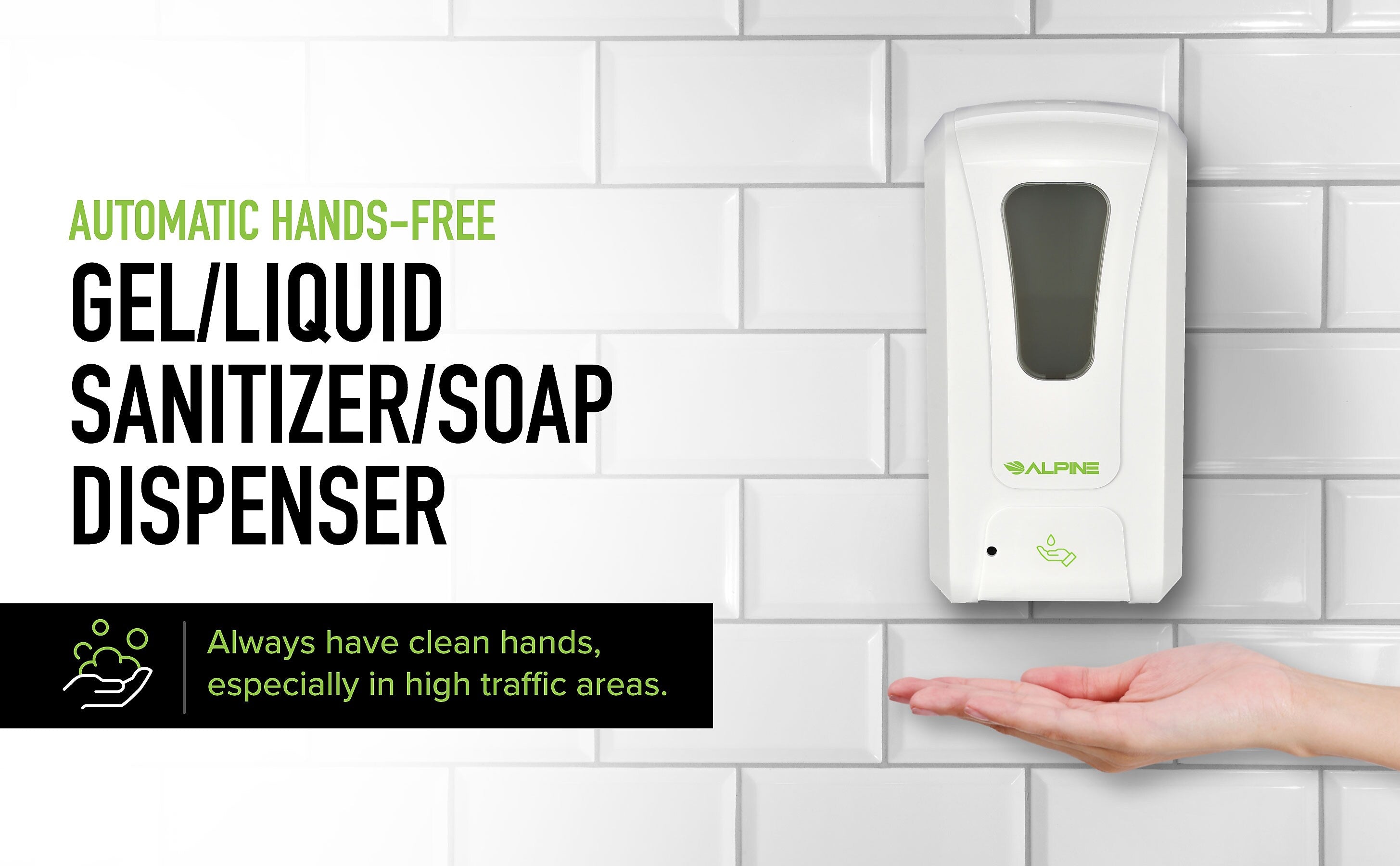 Alpine Industries Universal Wall Mounted Automatic Hand Sanitizer Dispenser, White (430-L)