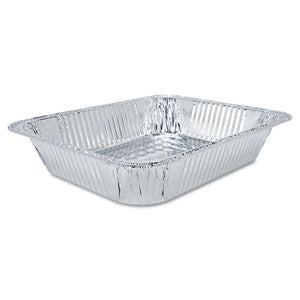 All-purpose pans are an affordable carryout solution. Oblong aluminum design accommodates a wide variety of carry-out and catering applications. Easy to clean for reuse.