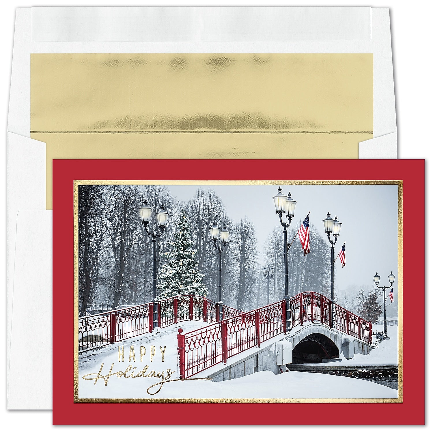 "American Path" Holiday Card w/ Gold Lined White Envelope, 25/BX