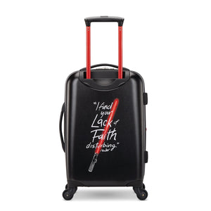 This bag will show off your personality while giving you all the bells and whistles you need while traveling! Featuring four multi-directional spinner wheels, an adjustable push-button locking handle, and plenty of interior organization, this case is sure to be a delightful travel companion. Included Star Wars ID tag will make your case easy to spot at baggage claim. Airline Approved - this carry on is the perfect size to bring aboard most major airlines.