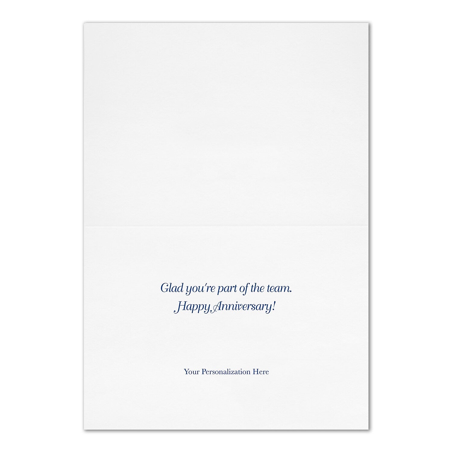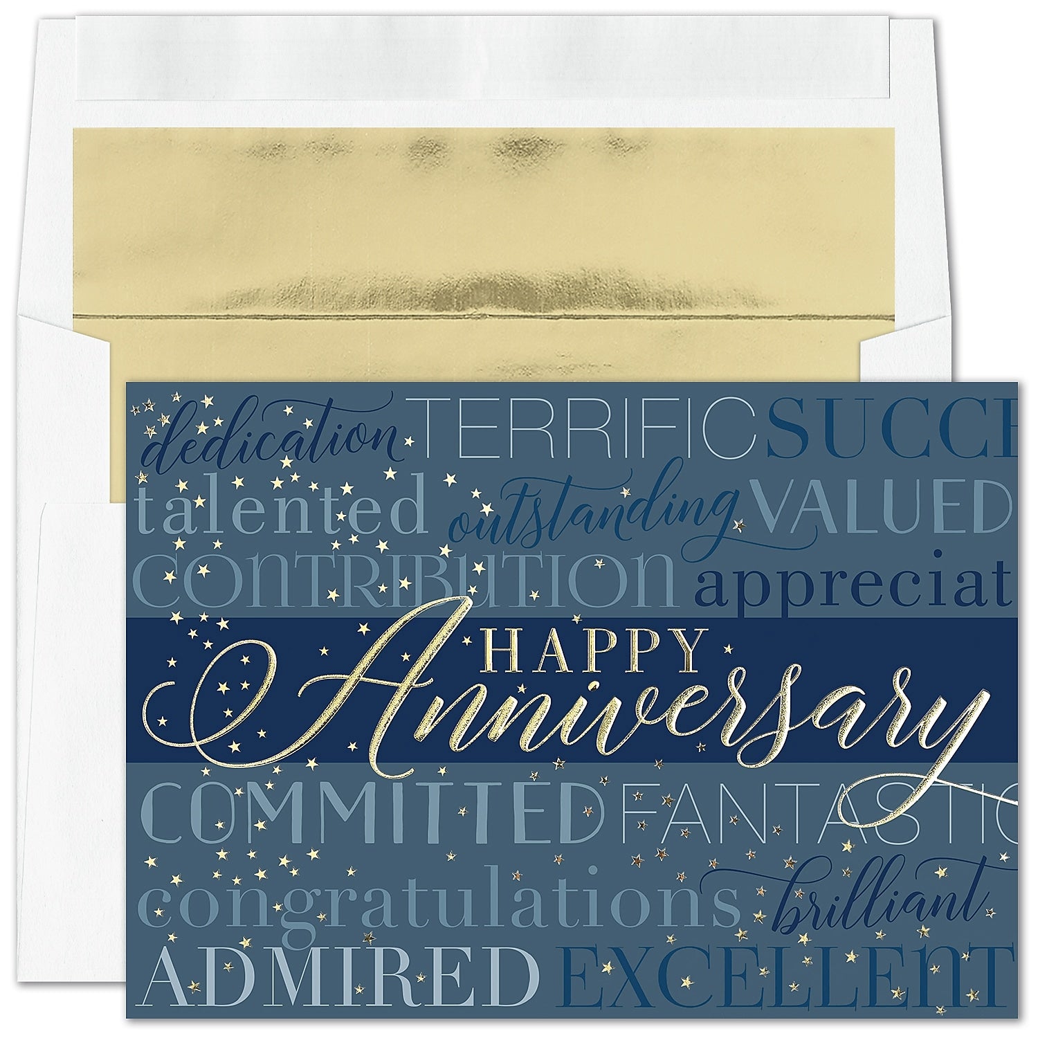 Two textures of real gold foil, one smooth and shining, the other pebbled and gleaming, make these fun anniversary cards the perfect way to show your employees how much you appreciate them.