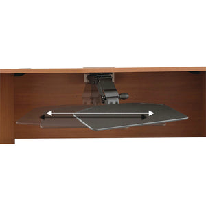 Accommodates keyboard and mouse. Retracts under worksurface when not in use. Two non-slip strips on keyboard shelf.