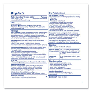 Easy-to-swallow coated tablets with extra-strength fever reducer and pain reliever. Packaged for individual use to replenish first aid stations and kits.