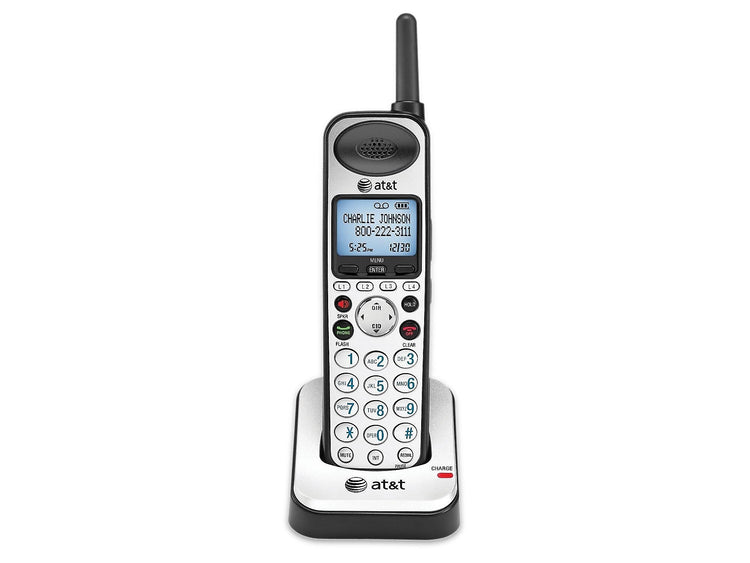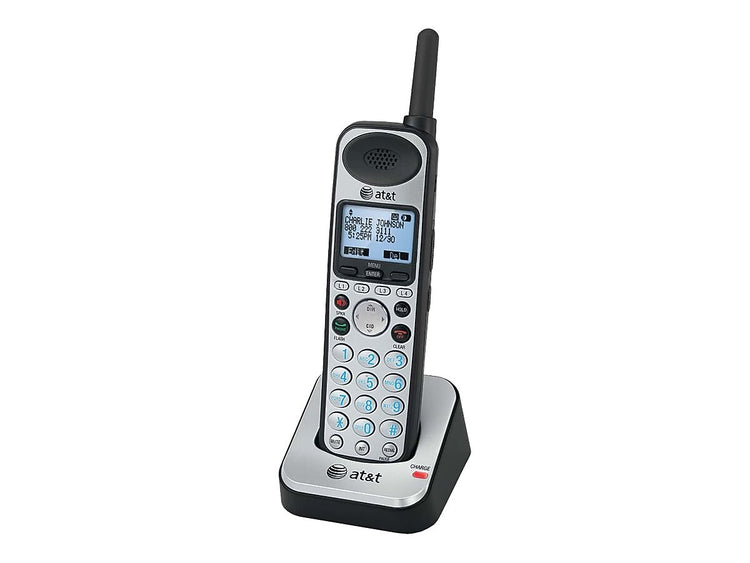 Eliminate noise and enjoy clear conversations using this cordless handset. Integrated digital technology delivers increased sound quality while on a call, even when the phone is separated up to a half mile from its base, while an auto-attendant directs callers to pre-programmed destinations, such as company directories or business extensions. This AT&T SynJ cordless handset instantly connects entire teams using a push-to-talk intercom feature.