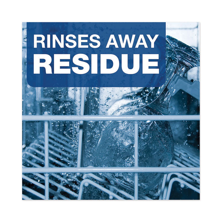 - Dishwasher detergent rinses away residue, leaves dishes sparkling and clean.