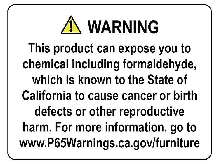 - ⚠ WARNING: This product can expose you to chemicals including formaldehyde, which is known to the State of California to cause cancer or birth defects or other reproductive harm. For more information, go to www.p65warnings.ca.gov/furniture