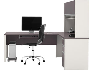 Bestar Connexion 71"W L-Shaped Desk with Hutch and Pedestal, Slate/Sandstone (93859-59)