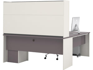 - Matching overhead hutch offers additional storage with 2 flip doors and paper management compartments