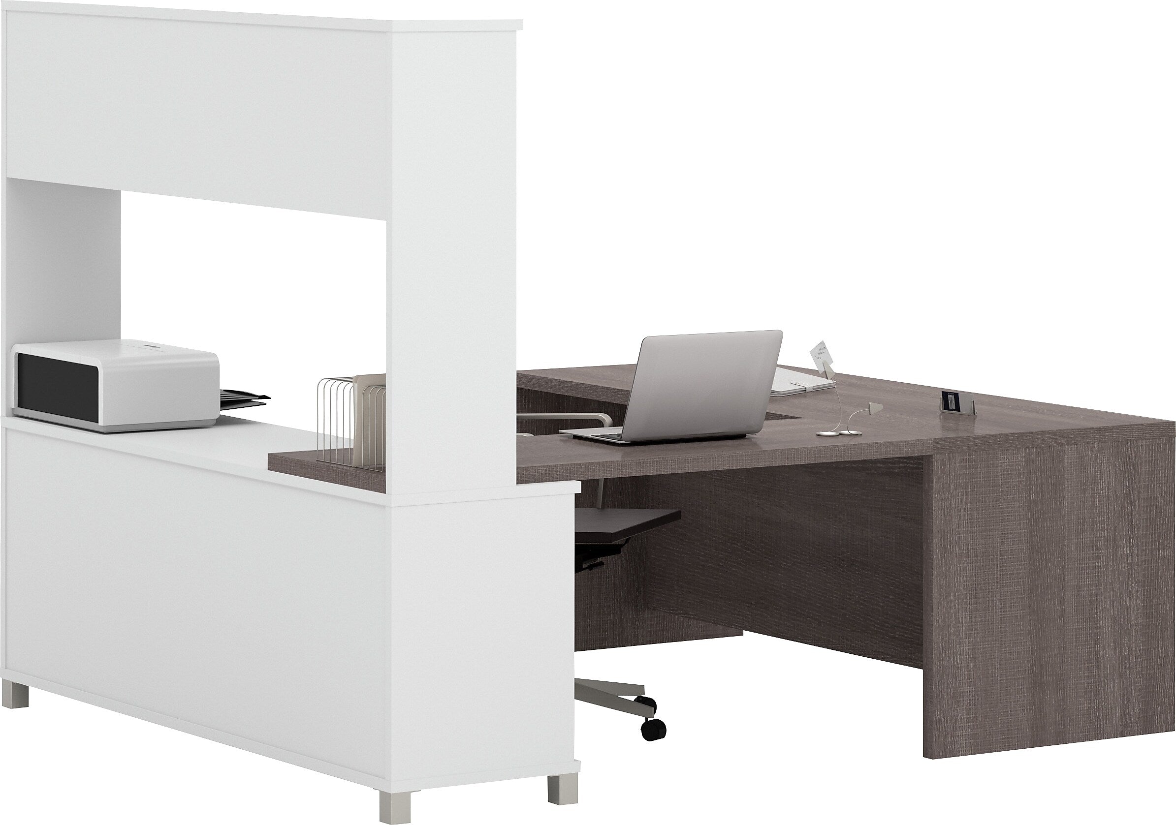 Bestar Pro-Linea 71" U-Desk with Hutch, White/Bark Grey (120880-47)