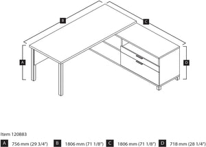 Bestar Pro-Linea 71"W L-Desk, White & Bark Grey (120883-47)
