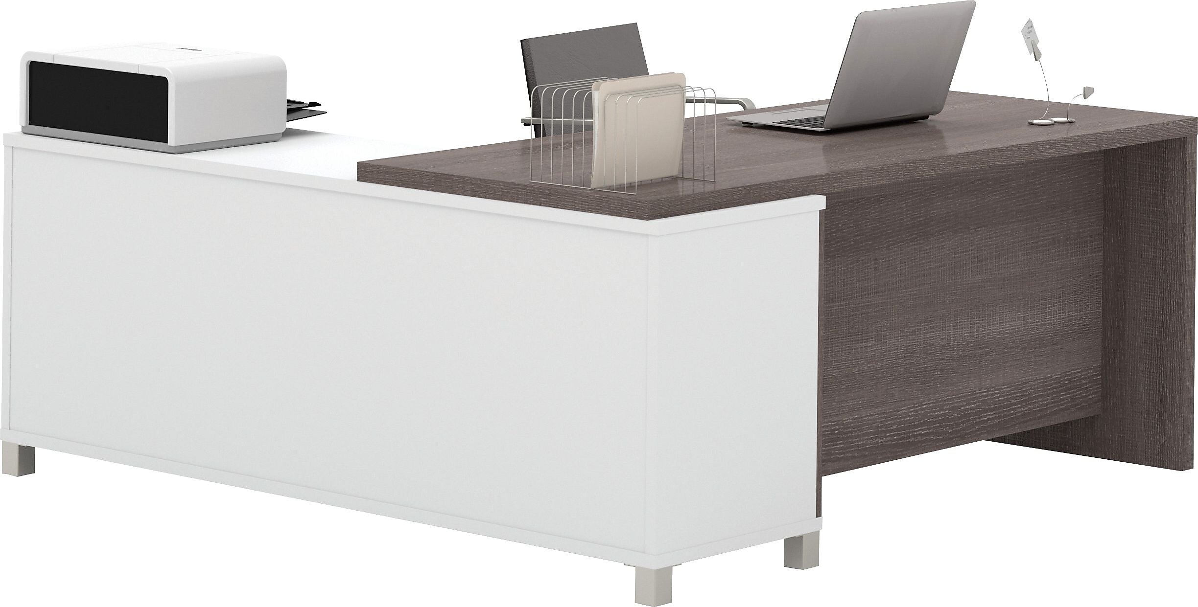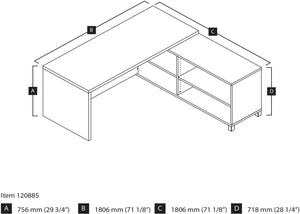 Bestar Pro-Linea 71"W L-Desk, White & Bark Grey (120885-47)