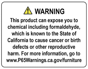 - ⚠ WARNING: This product can expose you to chemicals including formaldehyde, which is known to the State of California to cause cancer or birth defects or other reproductive harm. For more information, go to www.p65warnings.ca.gov/furniture