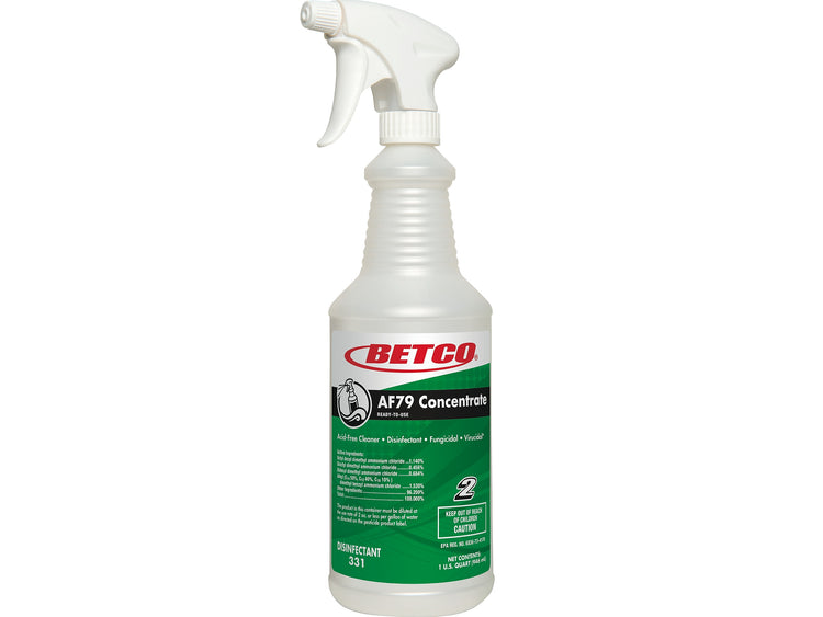 Betco empty spray bottle for the AF79 cleaner. This bottle makes dispensing and storing your AF79 cleaner simple. The bottle is clearly labeled with the product name for easy identification.