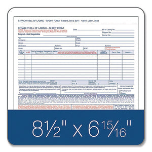 Bill of Lading - Short Form for Up to Ten Articles, Three-Part Carbonless, 8.5 x 6.94, 50 Forms Total