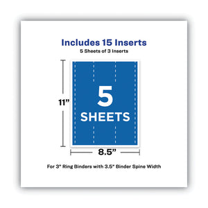 Binder Spine Inserts, 3" Spine Width, 3 Inserts/sheet, 5 Sheets/pack