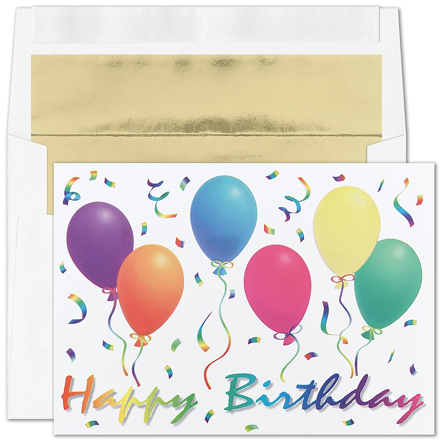 "Birthday Balloons" Card w/ Gold Lined White Envelope, 100/BX