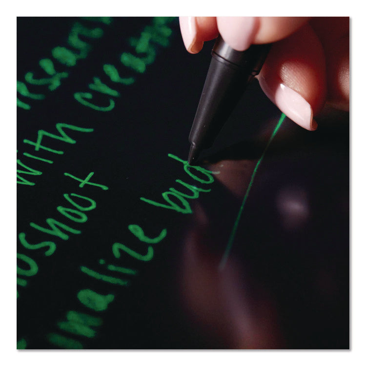 Blackboard 2.0 is a reusable smart notebook that helps you merge the cognitive benefits of hand-writing notes with the power of digitization. Preserve pages of notes in the form of digital files for increased efficiency at home, the office, or on campus. Blackboard 2.0 is slim, lightweight, and built for taking on the go. Ditch the countless pages of paper, ink pens, and charging cords, and embrace the reusable smart writing solution that saves notes with a simple scan. Simply access the scan feature via the free Blackboard by Boogie Board app for iOS and Android. Notes and sketches can be saved as PDF or JPEG files, easily organized, and ultimately shared with contacts. Up your productivity game thanks to the app's integration with Dropbox, Google Drive, Evernote, OneNote, and OneDrive. Blackboard 2.0 will quickly replace your piles of paper notebooks and earn the title of "go-to" writing tool thanks to its intuitive design, sustainable format, and focused features. Enjoy endless "pages", a dark mode writing surface to spark creativity, and high-contrast, vibrant green writing that's unmistakably bold.