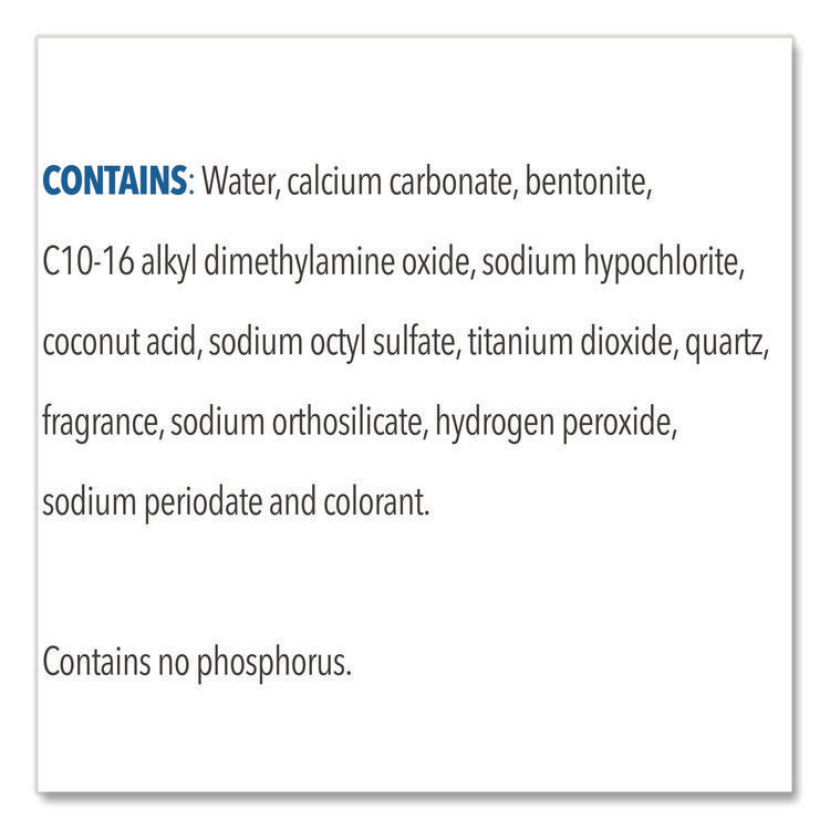 With the power of Clorox bleach, CloroxPro Bleach Cream Cleanser removes stubborn stains and leaves surfaces clean and sanitary. It is easy to use and rinse off, while being gentle on surfaces. With 1.3% sodium hypochlorite, it provides fast, strong cleaning. From CloroxPro, this cleaner is tested for compatibility with most surfaces including sinks and tubs, showers, toilets, kitchen countertops, stainless steel appliances and more. Ideal for use in healthcare settings. CloroxPro, where clean means everything.