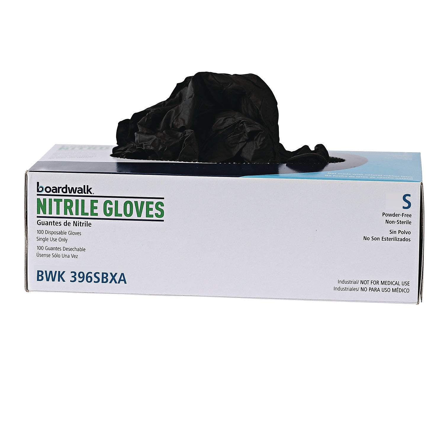 Boardwalk Powder Free Nitrile Industrial Gloves, Latex Free, Small, Black, 100 Gloves/Box (396SBXA)