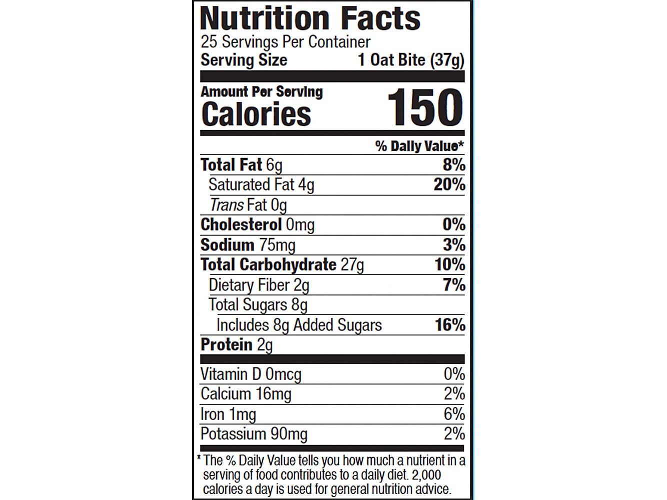 - 25 bars per box; 1.3 oz. per serving (150 calories)