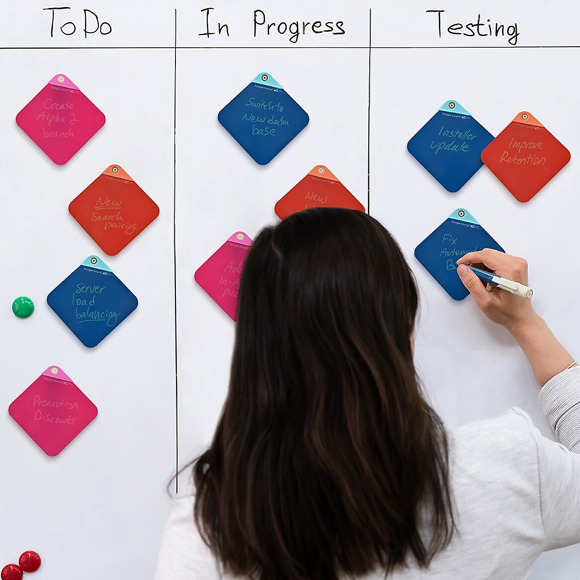 Save on wasteful paper sticky notes by keeping the innovative VersaNotes close by to reuse over and over again. Erase with the tap of the VersaPen. Write with the uniquely designed VersaPen for clean lines. The patented Clean Writing Technology ensures that you don't have to worry about spills and messes blurring your paper notes or smudging your dry-erase notes. Simply write, remember, and erase when needed. VersaNotes are thin and flexible reusable notes that stick to anything magnetic. No residue or washing off sticky backing every time you use them, unlike other reusable sticky notes. They're durable and reusable, so you can write and erase over and over again. No replacing dry-erase markers or running out of ink. Since VersaNotes are designed to be reused, one pack can replace endless paper sticky notes that often end up in the trash can. Not only is this great for reducing landfill waste, it also means one purchase of reusable notes can outlast multiple purchases of regular paper sticky notes, saving you money and time. Ready to kick-start your VersaNotes experience? The VersaNotes Starter Pack comes with one note in each color: cobalt blue, ruby pink, and sunrise orange, plus a VersaPen for seamless writing and erasing. Each note is 4" x 4" and includes its own magnetic plate that easily sticks to any surface. The perfect size for note-taking and reminders throughout the home and office.