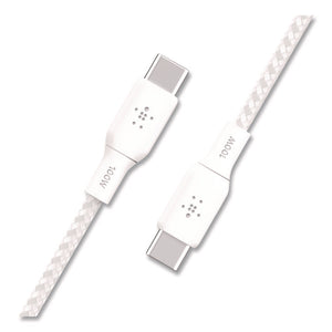 BOOST CHARGE Braided USB-C to USB-C Cable, 100 W Power Delivery, 6.6 ft, White, 2/Pack