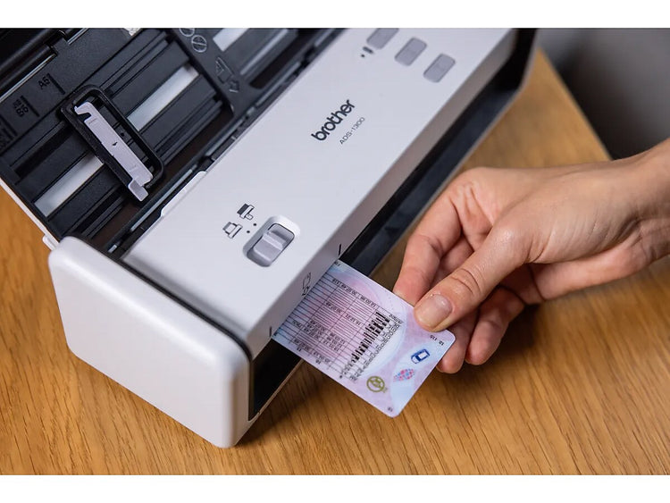 With fast scanning speeds up to 30 pages per minute (ppm)(1), a 20-page automatic document feeder(2), and single-pass double-sided scanning capabilities, you won’t believe the time – and space – you’ll save. The Brother ADS-1300 easily handles multiple document sizes and includes a handy card slot for quick scanning of ID cards, business cards, or plastic cards of all kinds. You’ll capture all the details with precise, high-resolution black and white or color scanning up to 600 x 600 dpi. Directly powered from your computer via an included USB-C cable, the Brother ADS-1300 is compatible with Windows, Mac®, and Linux® operating systems, offering TWAIN, WIA, ICA, and SANE drivers. It’s also ENERGY STAR 3.0 and EPEAT SILVER certified, with energy efficient options like Sleep Mode. It’s so simple to use, you’ll ask yourself how you ever organized without it.