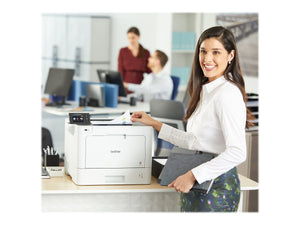 Get a fast, easy-to-use professional printing solution with powerful connectivity by using this color laser printer. Featuring built-in Wi-Fi connectivity, this machine lets you queue up jobs remotely and makes it easy to print from mobile devices through cloud printing services. Wi-Fi Direct and NFC functionality let you print without the use of a router, while the high-speed USB 2.0 port lets this machine accept jobs directly from USB-enabled devices. Boasting a resolution of up to 2400 x 600 dpi, this printer brings out the detail in professional documents and makes presentations stand out with vivid colors and detailed images. Print speeds of up to 33 pages per minute (9) let you complete large jobs quickly, while automatic duplex printing and a 250-sheet input tray minimize refill-related downtime. This Brother printer delivers smooth, responsive performance with an 800MHz processor and 512MB of memory.